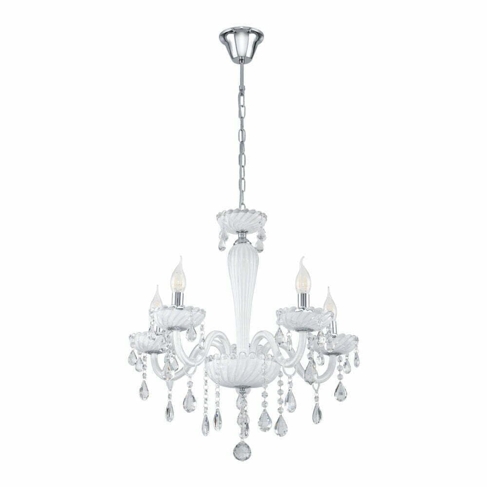 Candelabru CARPENTO 39113 Diametru 590 mm E14 5x40W IP20 oțel crom sticlă albă. Produs marca Eglo, disponibil în România.