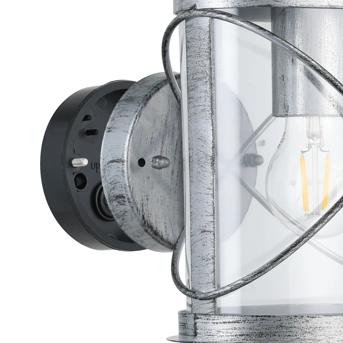 Aplică HILBURN 1 94866 E27 1x60W IP44 oțel zincat argintiu învechit. Produs marca Eglo, disponibil în România.