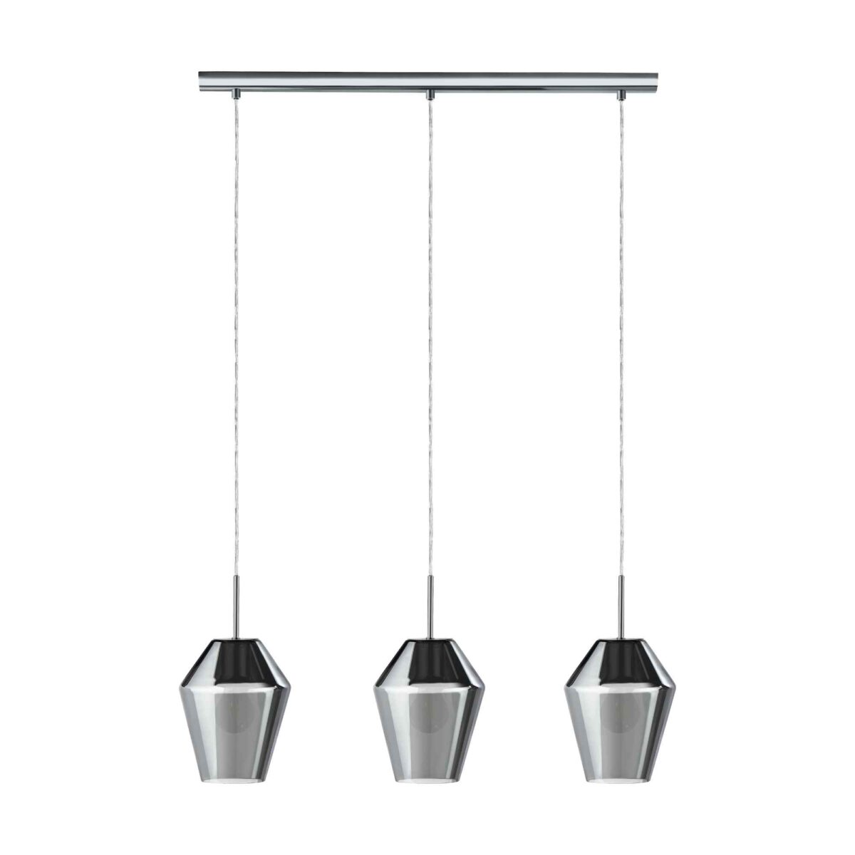Lustră MURMILLO 96774 E27 3x28W IP20 oțel crom sticlă fumurie negru transparent. Produs marca Eglo, disponibil în România.