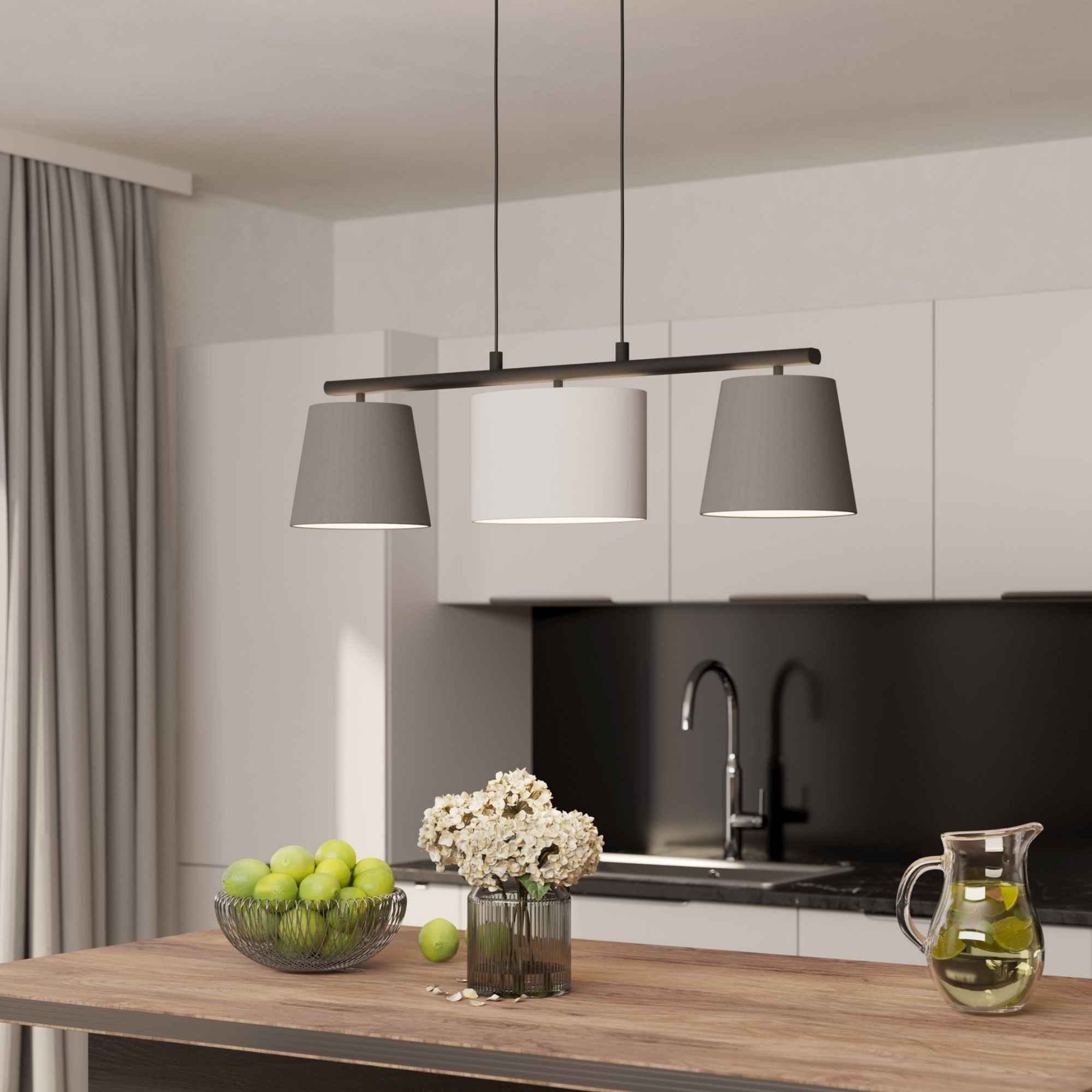 Lustră ALMEIDA 1 98587 E14 3x25W IP20 oțel negru textil gri alb. Produs marca Eglo, disponibil în România.