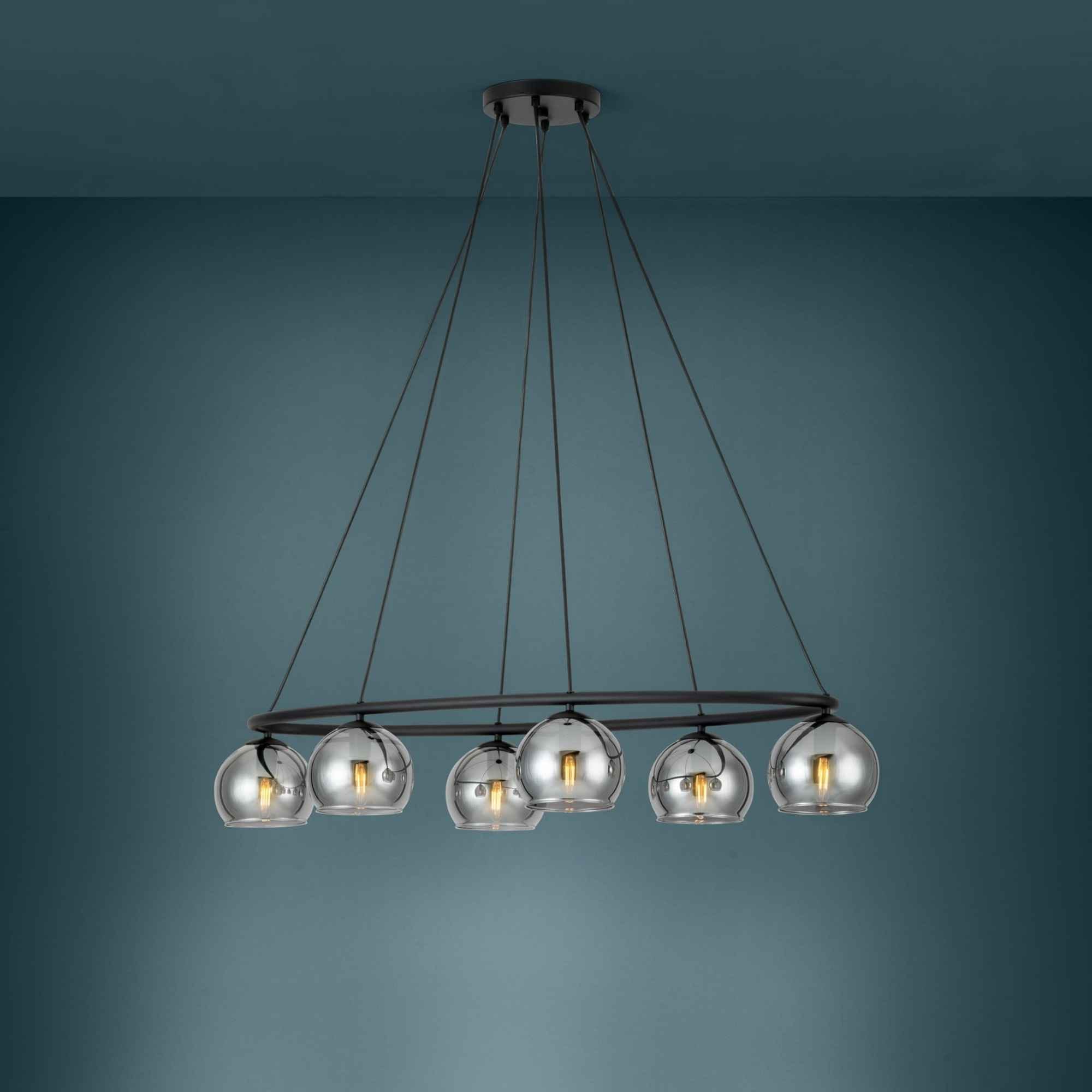 Lustră DAGUELLA 39578 E14 6x25W IP20 oțel negru sticlă aburită negru transparent. Produs marca Eglo, disponibil în România.