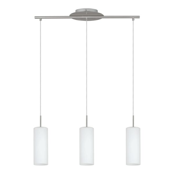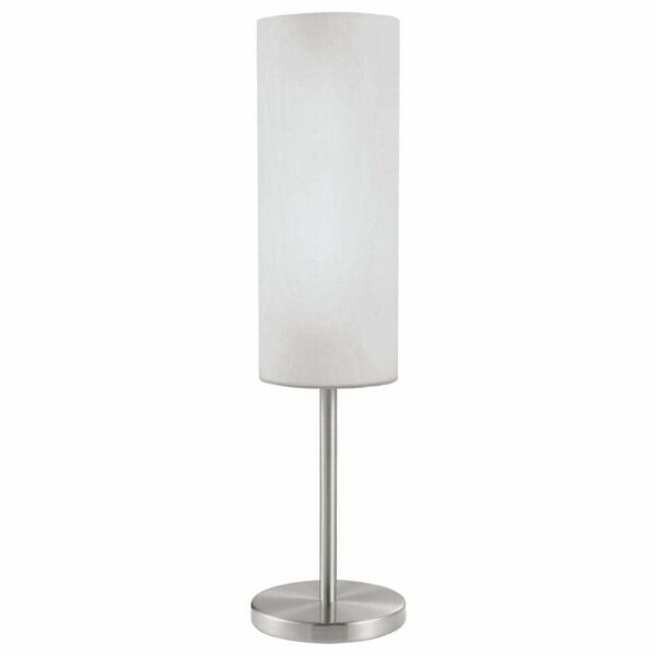 Lampadar TROY 3 85982 H1530 mm Diametru 105 mm E27 1x40W IP20 oțel nichel mat sticlă satinată alb lăcuit. Produs marca Eglo, disponibil în România.