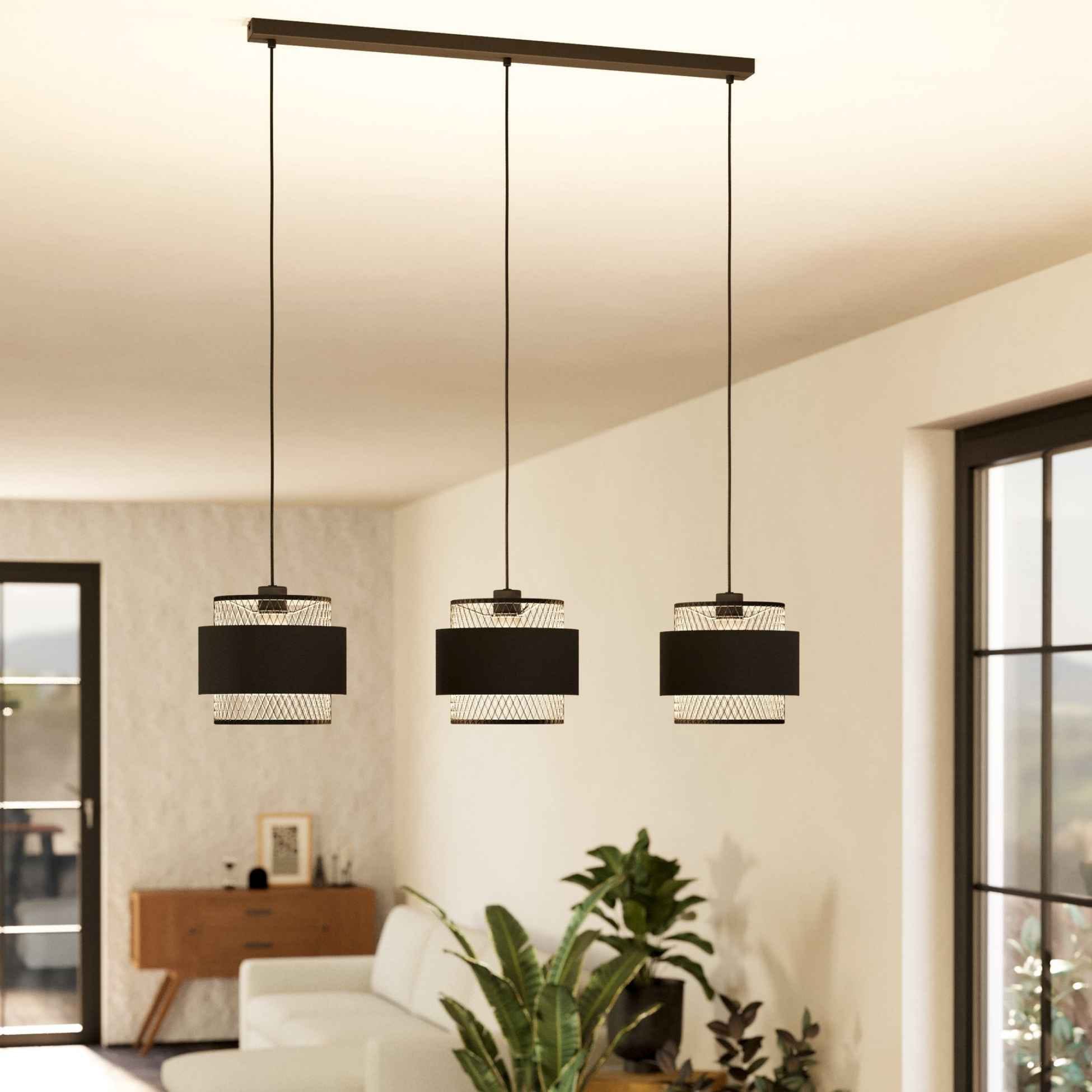Lustră BAZELY 43669 E27 3x40W IP20 oțel negru textil negru. Produs marca Eglo, disponibil în România.