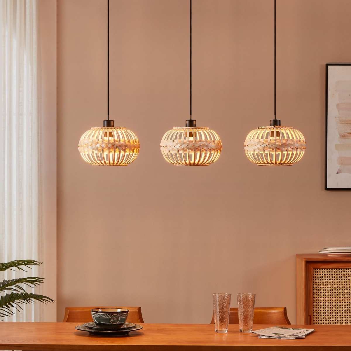 Lustra Amsfield 1 43863 are o structură din oțel negru și trei abajururi din lemn natural, compatibile cu becuri E27 de până la 40W fiecare. Modelul oferă o înălțime ajustabilă până la 1100 mm și o lungime de 960 mm. Produs marca Eglo, disponibil în România.