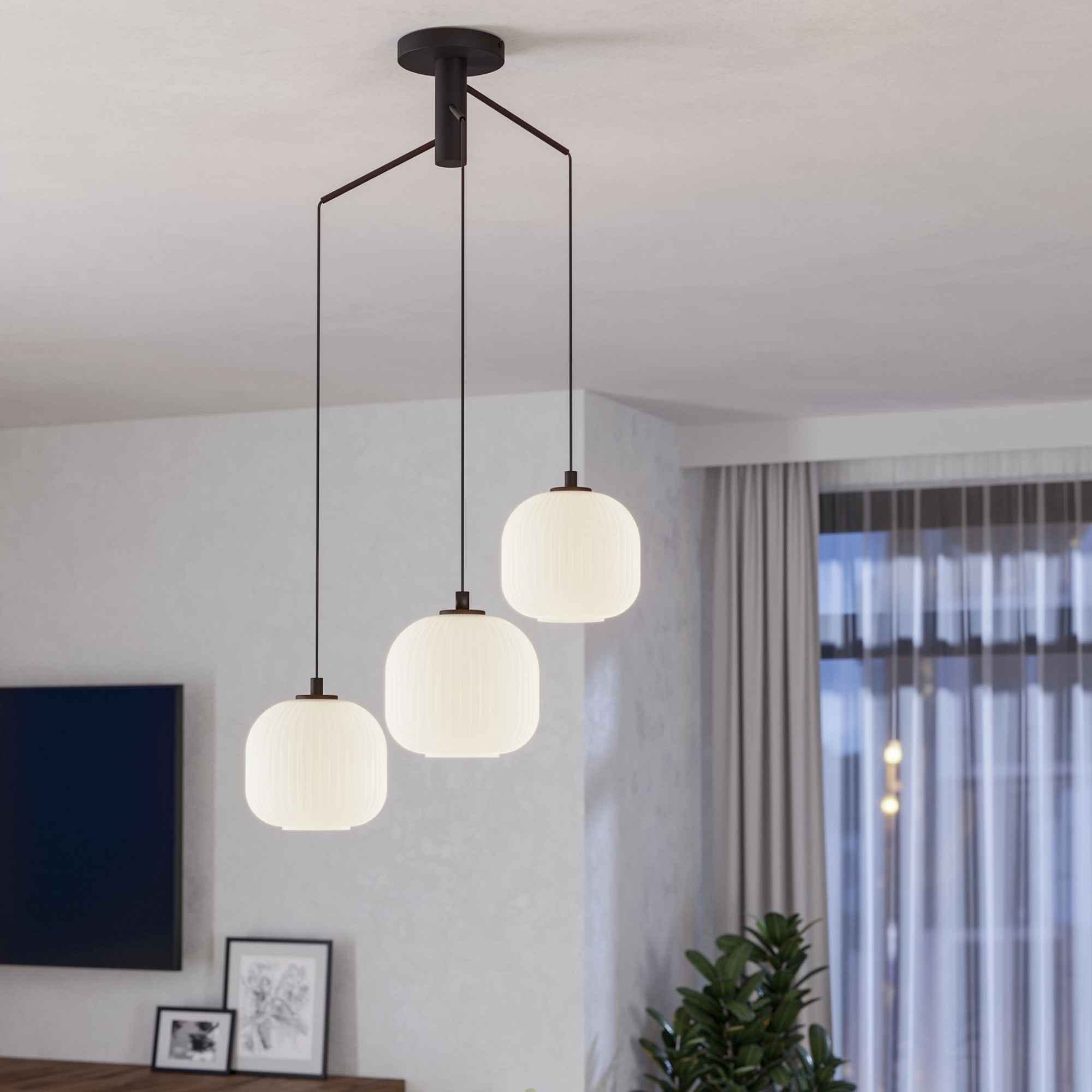 Lustră MANTUNALLE 99368 Diametru 620 mm E27 3x40W IP20 oțel negru sticlă albă. Produs marca Eglo, disponibil în România.