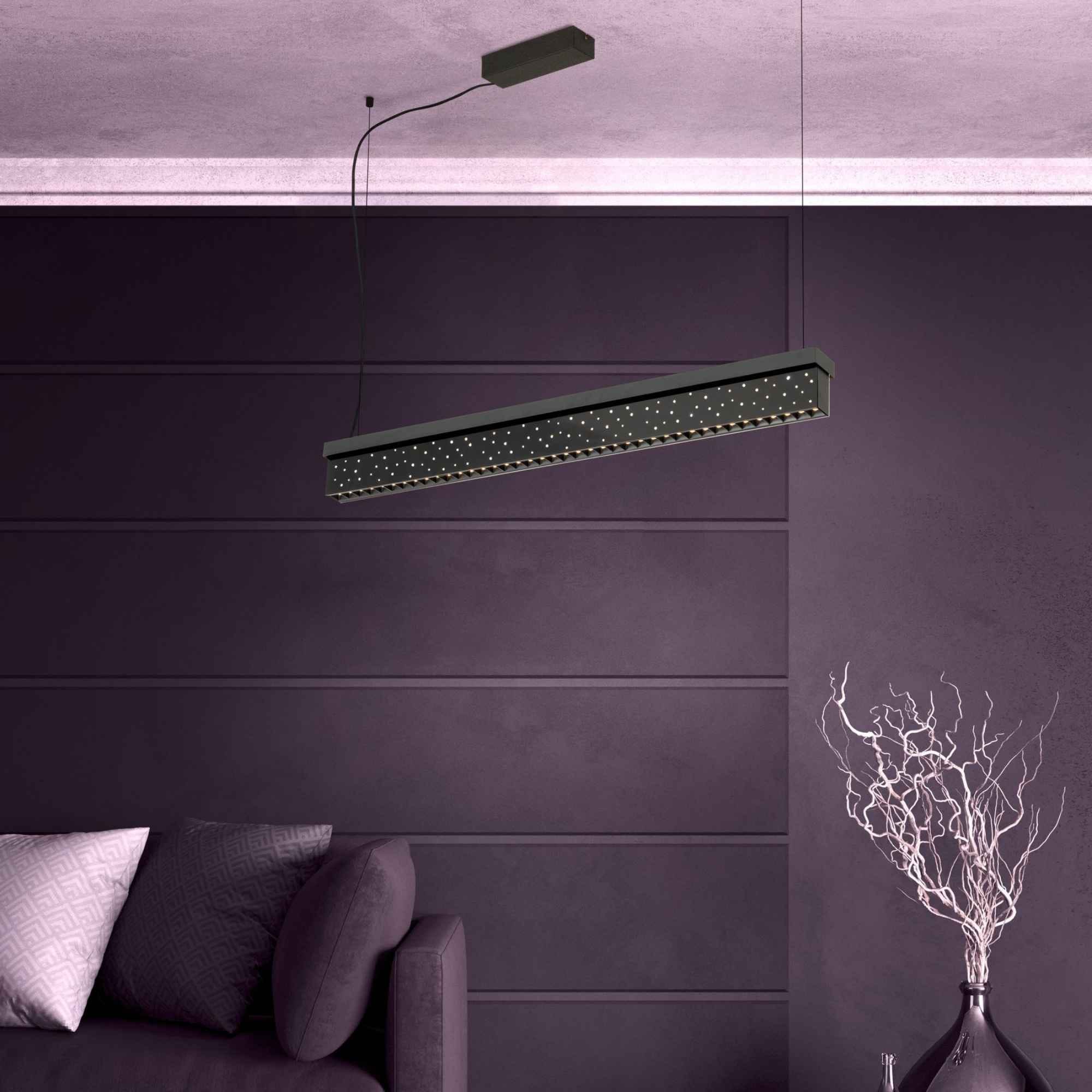Lustra Aurotonello 39826 este decorată cu cristale Swarovski și echipată cu LED integrat de 48W care oferă un flux luminos total de 5900 lumeni și lumină caldă sau neutră 3000K–4000K. Lustra este dimabilă, permițând reglarea intensității luminoase cu un variator de perete compatibil, și beneficiază de 5 ani garanție. Înălțimea este reglabilă până la 1500 mm, lățimea este de 65 mm, iar lungimea măsoară 1170 mm. Produs marca Eglo, disponibil în România.