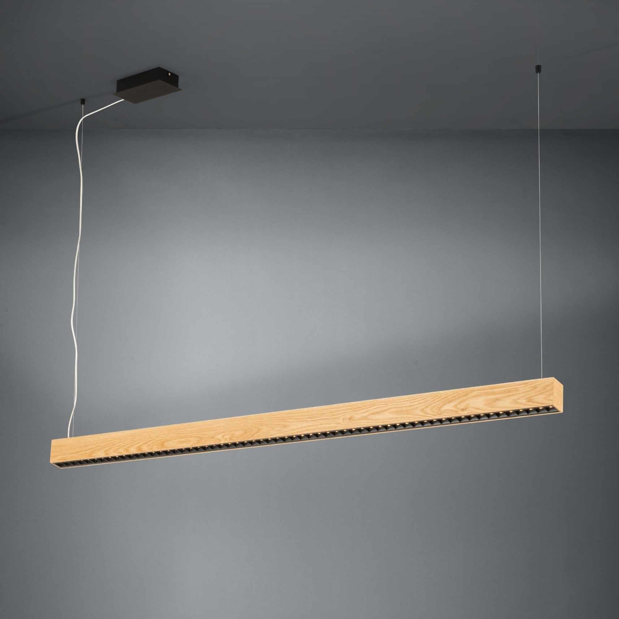 Lustra Termini 1 39719 este fabricată din oțel și lemn natural și are două surse de iluminat cu LED integrat de 30,5W și 15,5W, oferind un flux luminos total de 6250 lumeni, lumină caldă de 3000K și iluminare bidirecțională. Modelul este dimabil, permițând reglarea intensității luminoase cu un variator de perete compatibil și beneficiază de 5 ani garanție. Înălțimea este reglabilă până la 1500 mm, iar lungimea este de 1590 mm. Produs marca Eglo, disponibil în România.