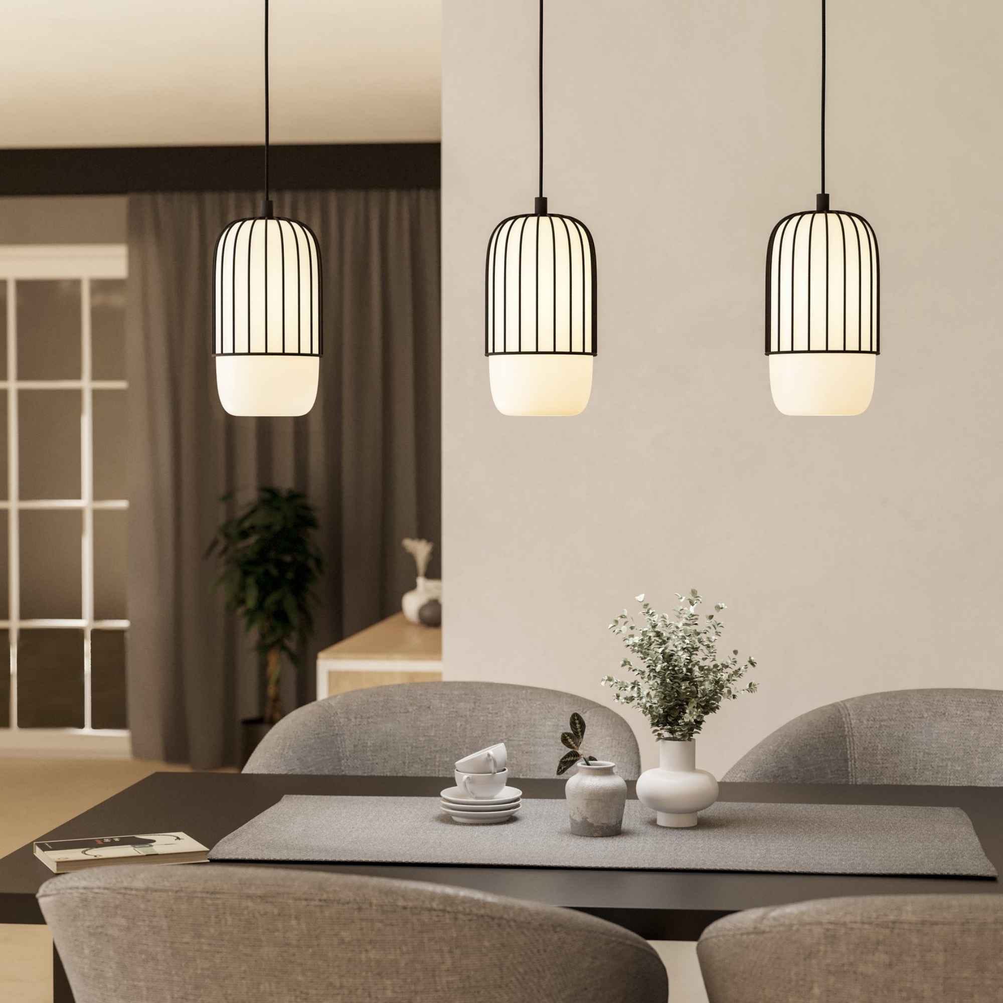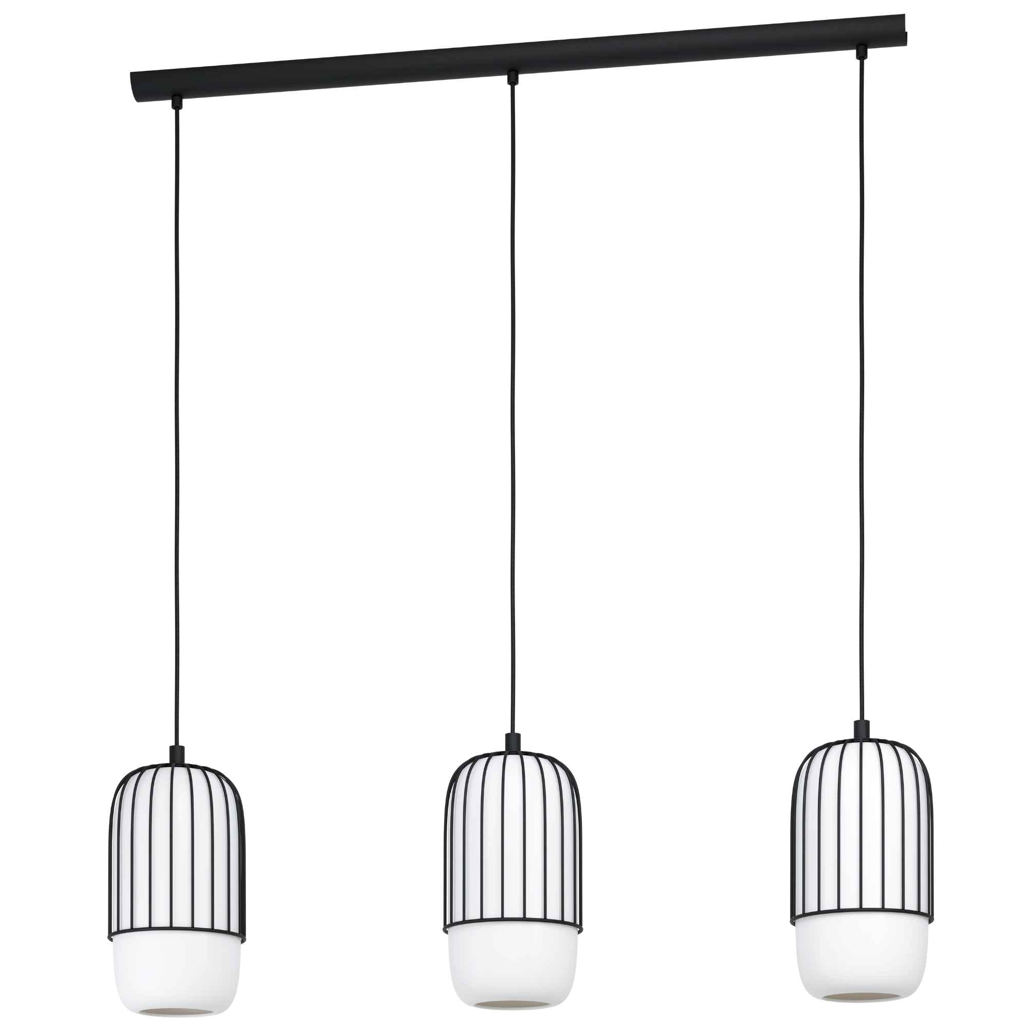 Lustră MULEGES 99619 E27 3x40W IP20 oțel negru sticlă opal mat alb. Produs marca Eglo, disponibil în România.