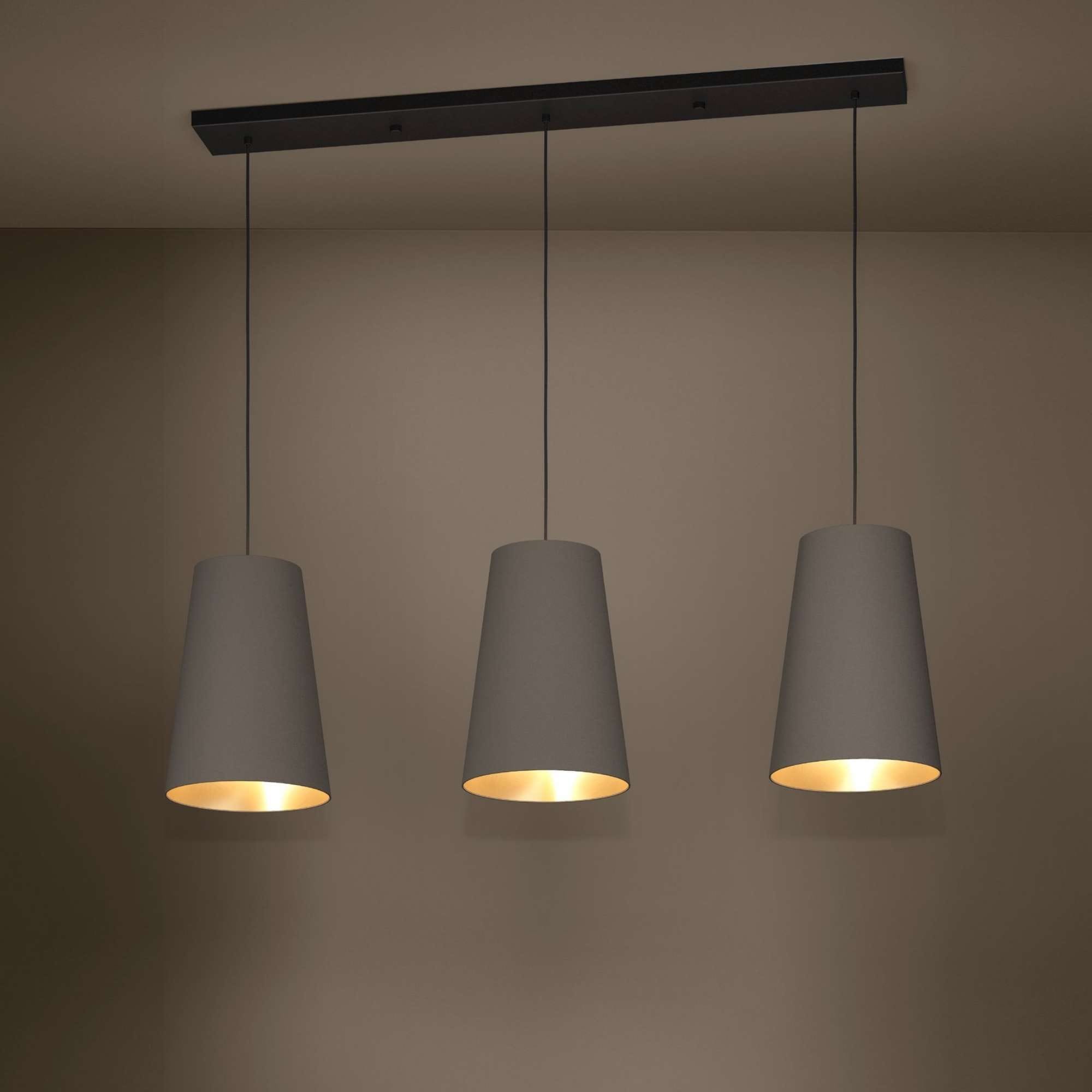 Lustră PETROSA 390196 E27 3x40W IP20 oțel negru textil cappuccino alamă. Produs marca Eglo, disponibil în România.