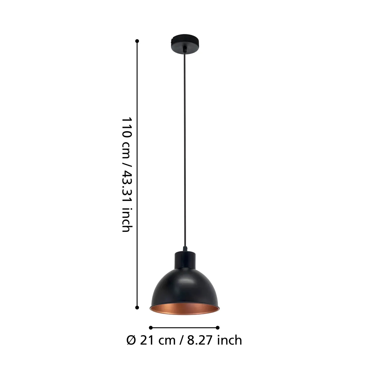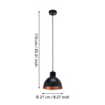 Pendul TRURO 1 49238 Diametru 210 mm E27 1x60W IP20 oțel negru cupru. Produs marca Eglo, disponibil în România.