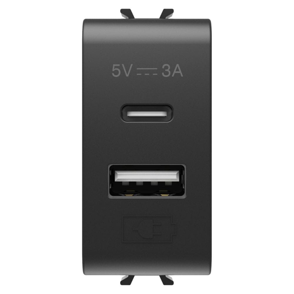 Priza incarcator USB tip A+C 5V 3A 1M Gewiss Chorus Negru satinat GW12449