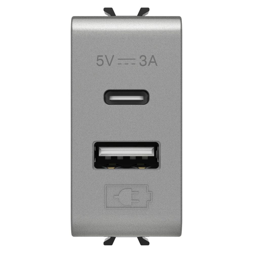 Produsul: Priza incarcator USB tip A+C 5V 3A 1M Gewiss Chorus Titan lucios GW14449, face parte din categoria Prize si intrerupatoare>Seria Chorus Gewiss