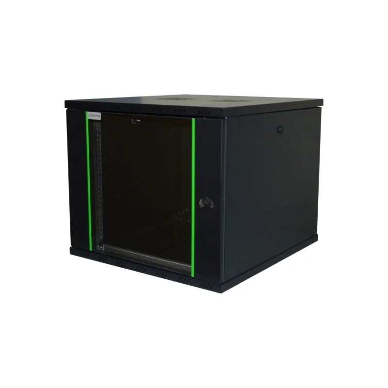 Rack 19” 15U 600×450, de perete, usa din sticla, panouri detasabile si securizate, dezasamblat, capacitate 100kg, negru RAL9005, D-META-2, DECKRO